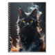 Carnet Chat noir mystifié dans un brouillard de fumée