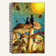 Image mignonne de deux chats assis au-dessus d'un champignon géant dans une forêt remplie de champignons qui observent les feuilles d'automne tomber contre le soleil et le ciel bleu pour créer un merveilleux panorama de l'histoire. .