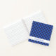 Ce carnet est orné d'un motif géométrique branché, un fameux damier croate aux tons bleus. Personnalisez-le avec votre nom dans la police bleue correspondante.