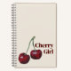 Illustration minimaliste "Cherry Girl" avec deux cerises brillantes et parfaitement mûres sur un arrière - plan crème souple. Rendu dans un style numérique qui imite des textures d'aquarelle douce avec des ombres subtiles.