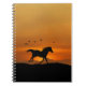 Joli cheval cantonnant au coucher du soleil avec des oiseaux. Une excellente façon de retourner à l'école ou fait un merveilleux journal pour les pensées et les sentiments. Une jolie image de cheval fantaisiste.