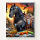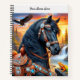 Deux oeuvres d'un étalon friésien portant une élégante selle et une bride occidentales, une cascade et un aigle sont à l'arrière - plan. L'oeuvre est à l'avant et à l'arrière. Imprimé sur un Carnet.