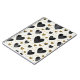 Make a sophisticated statement with this striking seamless pattern featuring a bold contrast. The design showcases a scatter of watercolor hearts in deep, classic black, ranging in size for a dynamic effect. These dark hearts are beautifully accented by playful specks and dashes of faux metallic gold confetti, all set against a subtle, textured cream background. This modern and chic design is perfect for a stylish journal, a contemporary diary, or a unique gift for someone who loves monochrome with a touch of glam.