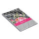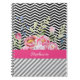 Carnet Chic rose floral noir et blanc Chevrons et nom
