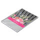 Un carnet floral rose chic avec un arrière - plan motif en chevron noir et blanc à la mode en haut et des rayures en diagonale grise et blanche en bas. Faites-le uniquement le vôtre en ajoutant votre nom à la bande rose chaude ceinturée.