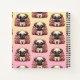 Carnet de fille personnalisée. Cute chibi dessin douillet petit chien chiot carlin assis dans des fleurs roses avec un nom que vous pouvez ajouter dans l'espace personnalisé.