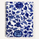 Carnet Chinois bleu marine foncé motif floral sur blanc