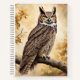 Une majestueuse chouette à grande corne est perchée dans un arbre, entourée de feuilles d'automne brunes, sur un arrière - plan de sable neutre, Beau carnet, et parfait pour quiconque aime les hiboux, les oiseaux, la nature et le plein air.