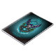Chouette aux éléments magiques. Le design se compose d'une chouette impressionnante et stylisée avec ses ailes larges, dessinées dans une palette de couleurs vives, violet, bleu et blanc. La chouette respire une présence majestueuse, tandis que ses yeux jaunes percevants regardent directement le spectateur, créant un sentiment d'intensité et de mystère. Des motifs tourbillonnants et complexes se déploient autour du hibou, rappelant des symboles magiques, donnant à l'image générale une aura mystique.
