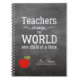 Un carnet d'enseignant personnalisé avec pomme rouge et un script inspirant de typographie blanche citent "Les enseignants changent le monde un enfant à la fois" sur un arrière - plan de tableau noir. Insérez le nom / le texte de l'enseignant dans les zones !