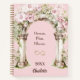 Un arrière - plan rose pâle décoré d'une grande arche en marbre de jardin et de fleurs roses et d'une boucle à débordement en faux or. La citation motivationnelle : Rêve. Planifiez. Fleurs. Personnalisez et ajoutez votre nom et votre année.