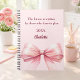 Un fond rose tendre et doux décoré d'un grand ruban. Citation inspirante et motivante : L'avenir est écrit par ceux qui osent planifier.