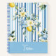 Carnet en spirale élégant et personnalisable avec un design rayé bleu et blanc éclatant avec des fleurs jaunes et blanches délicates, des accents citron et un texte personnalisé. Parfait pour agrémenter notes, idées ou plans avec une touche d'élégance.