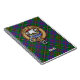 Clan Wood badge crête entouré d'une courroie et boucle sur l'arrière - plan tartan. Texte personnalisé.