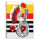 Un design fantaisiste de style rétro avec des souvenirs de vacances espagnoles, une guitare en fer forgé, un ventilateur en dentelle et une rose rouge sur un arrière - plan rayé. Un design personnalisable en noir, blanc, rouge et jaune doré pour que vous personnalisiez avec vos propres textes, images et idées. Une image art numérique originale.