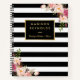 Carnet de notes personnelles couleur noir classique rayures florales.