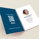 Ce design présente un modèle de cahier professionnel pour entreprise, avec un style minimaliste, ajoutez votre logo ou photo, avec un style moderne et simple, parfait pour les fournitures de bureau d'une entreprise, avec un code QR et des icônes de réseaux sociaux, vous pouvez facilement ajouter votre logo ou photo ici, en fait un excellent cadeau, avec un design bleu et blanc