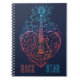 Ce design carnet célèbre l'amour de la musique et de la guitare. Il présente une illustration simpliste d'une guitare électro entourée d'un grand coeur de néon et de notes musicales.