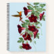 Un colibri aux couleurs vives sirote le nectar d'une fleur de Mandevillea rouge vif sur ce Carnet spiral.