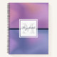 Un carnet en spirale avec un arrière - plan design moderne. Couleurs roses et violettes tourbillonnant autour créant un élégant effet dégradé. Un carré superposé avec votre texte à l'intérieur.
