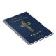 Carnet pour confirmation avec une croix d'or sur un arrière - plan bleu foncé. Personnalisez le nom, la date et le texte.