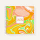 Corail, Orange, Lime Green Swirl Marble Fluid Art monogrammed sketchbook.