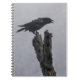Ce corbeau était perché en hauteur sur un arbre mort par jour très venteux.