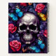 Un crâne gris argenté est entouré de roses rouges, de feuillage pourpre et de papillons bleus et jaunes sur ce fabuleux carnet Goth. Sombre, obsédant, et si beau !