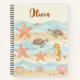 Ce cahier personnalisé présente des créatures marines bébé adorables - étoiles de mer, tortues et hippocampes - sur fond de motifs de vagues douces et de sable fin. Ce design ludique présente des bleus pastel apaisants, des tons de sable chauds et des accents de corail.