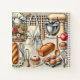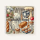 Illustration charmante et détaillée d'une cuisine rustique avec des produits de première nécessité comme un mixer, un tablier et des pâtisseries, évoquant une ambiance chaleureuse et familiale, parfaite pour les amateurs de cuisine.
