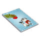 Un carnet drôle et mignon avec un thème de noël. Un chat siamois blanc espiègle et ludique. Elle regarde une décoration d'arbre de noël accrochée à une branche de pin qui se demande si elle devrait être coquine et jouer avec ou non. Placez-vous sur un arrière - plan bleu avec des flocons de neige blancs.