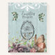 Custom text, retro painted blue background with watercolor botanical artwork.