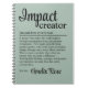 Celebrate those who spark positive change with this Impact Creator definition notebook. Thoughtfully designed for people who inspire growth, build connection, and make a difference through everyday actions. A meaningful personalized gift for teachers, leaders, coworkers, or anyone who brings light and purpose to what they do. Perfect for journaling ideas, reflections, or future goals that continue to create impact.
