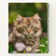 Un jeune chaton brun, maine Coon, assis curieusement dans un pré fleuri au printemps. Photo d'un chaton coonie de Katho Menden. Ce carnet en spirale est une idée cadeau pour les amoureux de les chats. - Personnalisez-le avec votre nom ou votre texte.