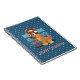 A notebook with illustration of cute German Shepherd with a present on a starry night dark blue background (muted version), illustrated by Radka2D