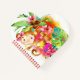 Cute watercolor monkey all dressed up and enjoying a tropical day. Flowers, palm trees, and tropical foliage are bright and cheerful.