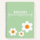 A cute baby green notebook with simple white flowers.