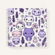 Arrière - plan blanc avec de mignons caractères Kawaii violets et fleurs de lavande sur ce carnet en spirale carré, où les pages intérieures peuvent être changées pour répondre à vos besoins, ainsi que différentes spirales de couleur, etc.