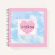 This sweet notebook features a pink heart with a customizable name and a light blue sky photo in the background.
