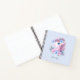 Carnet spiral avec une adorable image d'un doux portrait de tête de licorne de bébé. Un petit papillon qui visite, floutant près de son nez. Un bouquet de fleurs autour de son cou complètent ce design très mignon.