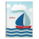 Ce carnet présente le graphisme d'un mignon voilier sur les vagues et l'arrière - plan bleu clair ciel accentué par de subtils nuages blancs. Le texte personnalisé vous permet de personnaliser ce carnet avec un nom.