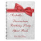 Filles élégantes de livre d'invité de fête d'anniversaire de célébration de Quinceañera. 15ème Fête d'anniversaire ! Bel arrière - plan blanc de motif de damassé avec un jolis, élégants arc et image rouges romantiques de ruban. Ces livres d'invité fascinants et chics sont parfaits pour des adolescentes et sont décorés/imprimés de la partie antérieure seulement. Les adolescents aimeront ce livre d'invité moderne chic de fête d'anniversaire. Tout le texte est entièrement personnalisable pour répondre à vos exigences. NOTEZ SVP : Tous les produits sur Zazzle ont des images imprimées d'appartement. Images d'arc et de ruban achetées de numérique-conception-par-Elena. Si vous avez besoin de n'importe quelle aide customisant votre produit svp me contactez par mon magasin et je serai heureux d'aider.