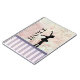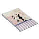 Un mignon carnet en spirale avec une silhouette de ballerine sur un joli arrière - plan. Cette élégante danseuse de ballet se tient sur ses orteils, en pointe avec ses bras tendus avec grâce. Le mot "DANCE" écrit à côté de cette danseuse élégante. L'arrière - plan est composé d'un motif d'aspect vintage et abîmé, aux fleurs de fleurs. La partie inférieure du design présente des rayures de lavande de style vintage alternant dans les couleurs foncées et claires.