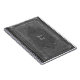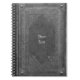 La couverture de ce carnet ressemble à un vieux livre fait de cuir avec des lettres d'argent que vous pouvez customiser avec votre texte (ou simplement supprimer)