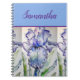 Blue Iris Watercolor Art Chic Aqua Floral Flower Carnet, avec un nom entièrement personnalisable. Conçu à partir de ma photo et de mon écriture de jardin d'origine.