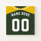 Ce design est un maillot de baseball / softball avec épaules d'or, et or et blanc garniture et décolleté, la couleur arrière - plan peut être changée, il suffit de cliquer sur la PERSONNALISER. carnet en spirale de 8,5 po x 8,5 po avec couvertures laminées, et un choix de style papier, y compris le carnet de croquis, gouverné, demi-régi, graphique. L'avant et l'arrière des carnets ont des modèles de jersey personnalisables, vous permettant d'ajouter votre propre choix de nom et de numéro - utilisez les cases à droite de l'image pour modifier le texte. Ces carnets sont parfaits pour l'esquisse, la création de listes, la tenue de recettes, la conservation de vos statistiques sportives, et idéal comme retour aux cadeaux scolaires pour les élèves. Cadeaux de maillot de sport personnalisés uniques pour les amateurs de sport et les joueurs de votre vie!