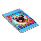 Ce carnet d'utilisation quotidienne dispose d'un Carlin gai, entouré de fleurs vives.