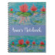 Dessin de fleurs de lotus rose et bleu, art naïf. Cahier personnalisé.
