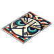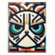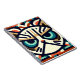 Un visage de chat grincheux stylisé dans un design géométrique audacieux avec des tons turquoises, crème et orange, parfait pour les amoureux de les chats avec attitude et un amour pour l'art décalé.