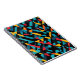 Composition abstraite dynamique de formes géométriques à tranchant pointu, turquoises, rouges, jaunes et noires, parfaite pour les amateurs de design audacieux et à contraste élevé.